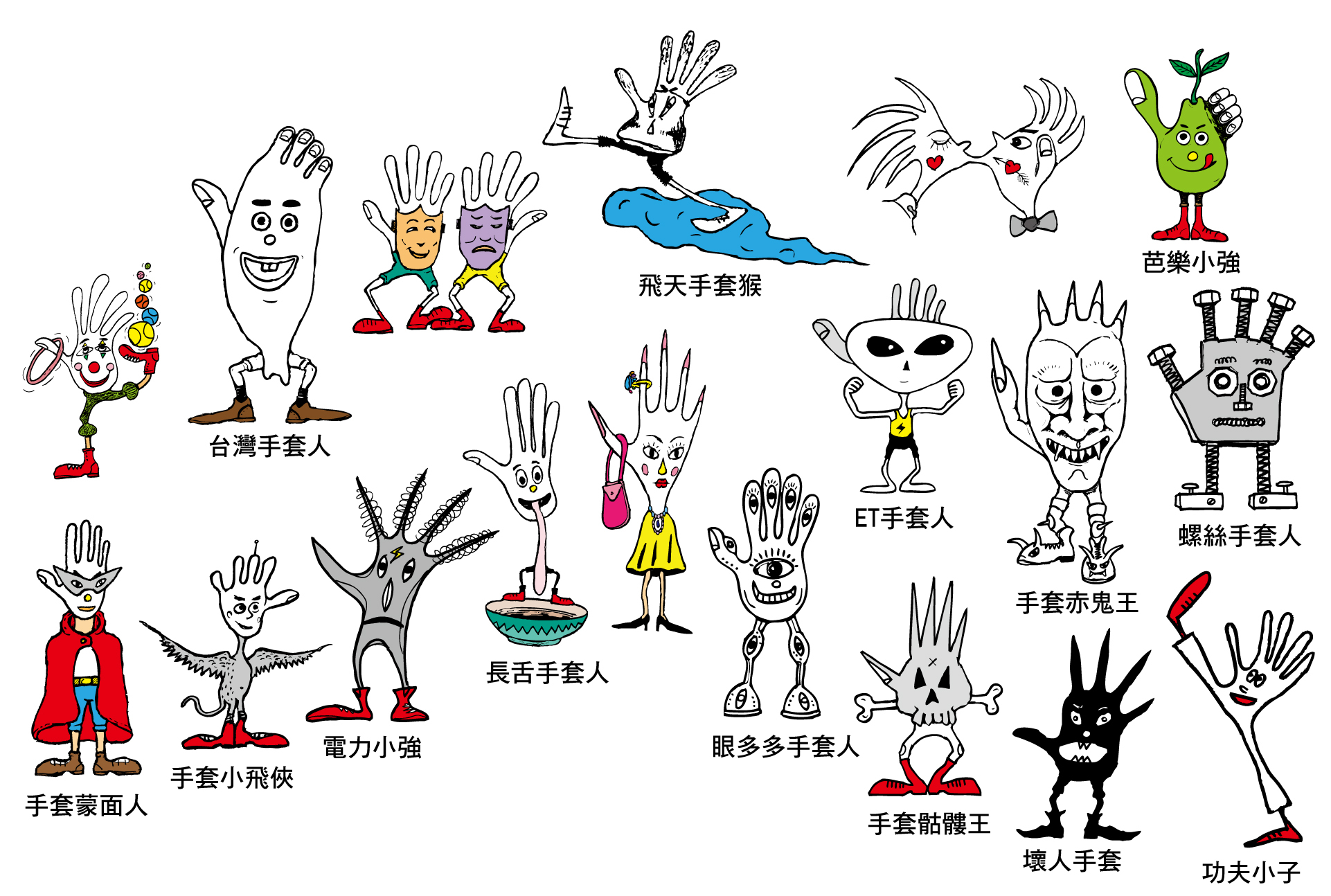 在1988年由創辦人陳義益先生設計的形象娃娃,右圖為初期的兩組代表圖騰,如今已增加到百餘組,並且也是台灣手套博物館的商標之一,採擬人化的造型設計、廣受大小朋友的喜愛!