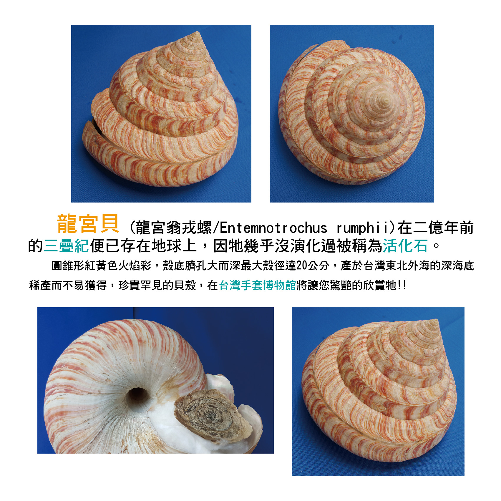 ●酷似愛因斯坦頭形的「白博士生髮石」和珍貴的活化石「龍宮貝」,還有諸多與手套相關的文物與藝品等...